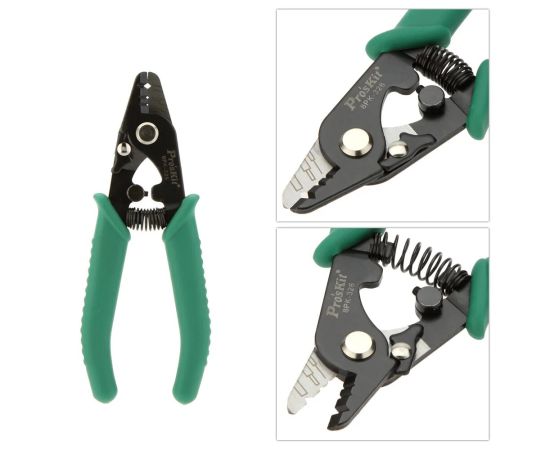 Инструмент для зачистки оптического кабеля ProsKit 8PK-326 00194742 - удобное оборудование, которое оснащено несколькими зонами реза. Изделие зачищает стекловолокно с изоляцией в 250 мкм без царапин.