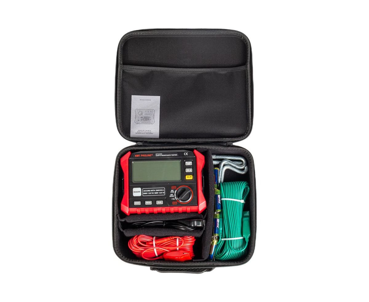 Цифровой измеритель сопротивления заземления КВТ KT 2302 PROLINE 87240 предназначен для измерения напряжения заземления, сопротивления заземления различного оборудования, мониторинга и планирования систем защиты от молний.