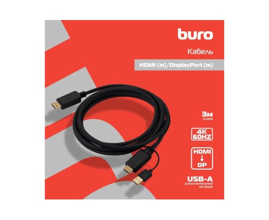 Кабель аудио-видео Buro HDMI (m)/DisplayPort (m) 3м (HDMI-DP-3M) Позолоченные контакты черный
