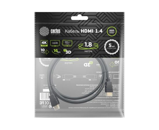 Кабель аудио-видео Cactus CS-HDMI.1.4-1.8 HDMI (m)/HDMI (m) 1.8м черный