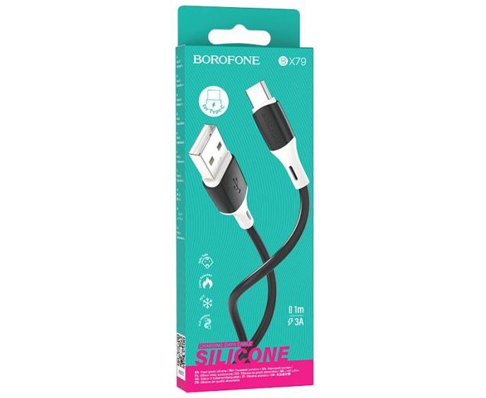 Кабель BOROFONE BX79/ USB Type-C/ 1m/ 3A/ Силикон/ Черный