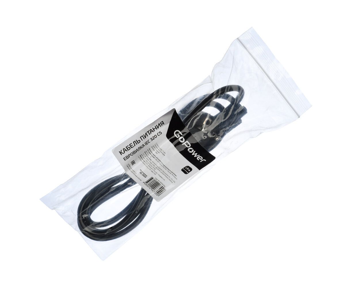 Кабель питания GoPower 00-00024056 евровилка CEE 7/7-IEC 320 C5 1.8м ПВХ 0.75мм черный 1/10/160