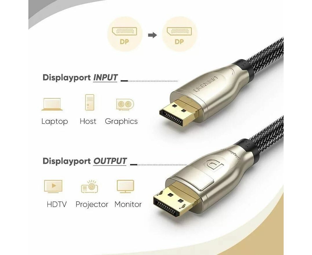 Кабель UGREEN DP112 60843 1.4 DP M/M Round Cable Zinc Alloy Shell with Braided 2m Black