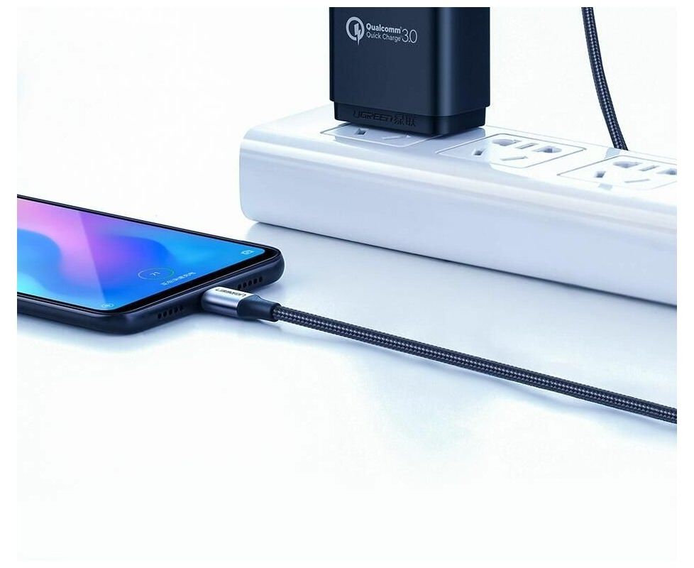 Кабель UGREEN US288 60125 USB-A 2.0 to USB-C Cable Nickel Plating Aluminum Braid 0,5m Black