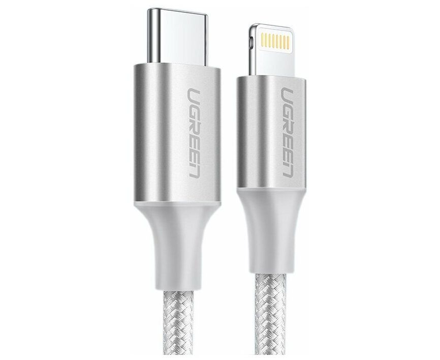 Кабель UGreen US304 (70525) USB-C to Lightning Cable Braided 2 м серебристый