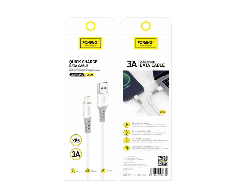 Кабель USB - Lightning Foneng X66 1M, 3A (White)