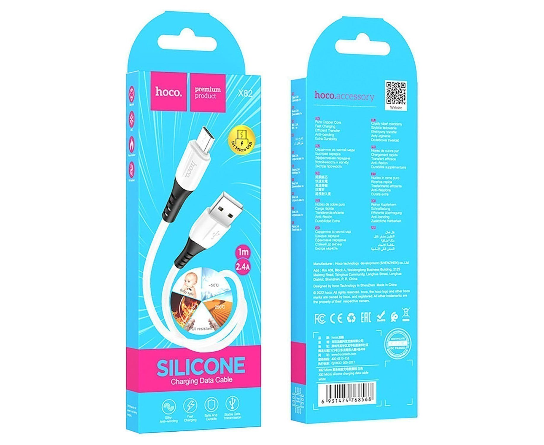 Кабель USB - micro USB Hoco X82 100см 2,4A (white) (206153)