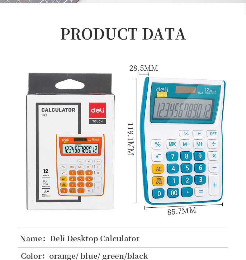Калькулятор настольный Deli E1122/OR оранжевый