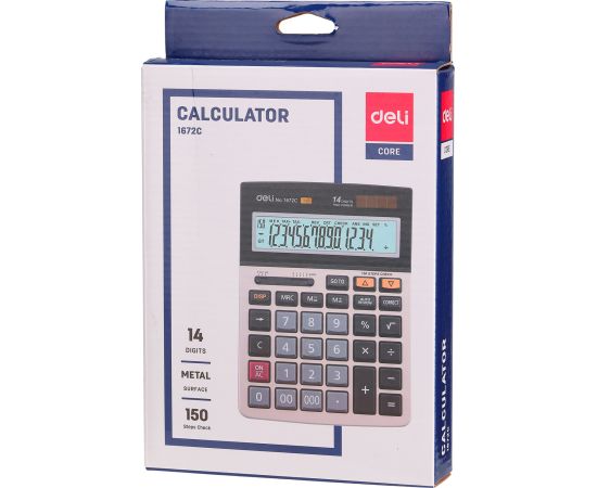 Калькулятор настольный Deli E1672C серебристый 14-разр.