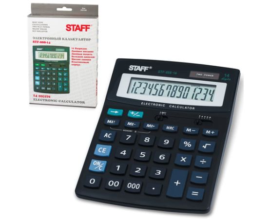 Калькулятор настольный STAFF STF-888-14 (200х150 мм), 14 разрядов, двойное питание