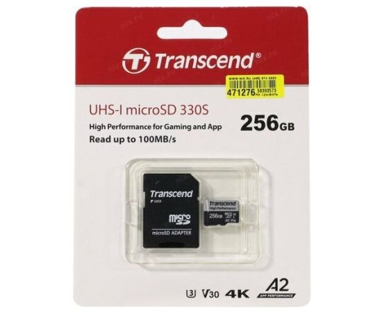 Карта памяти Transcend Ultra Perfomrance (TS256GUSD340S) 256GB microSDXC Class 10 UHS-I U3, V30, A2, (SD адаптер), TLC