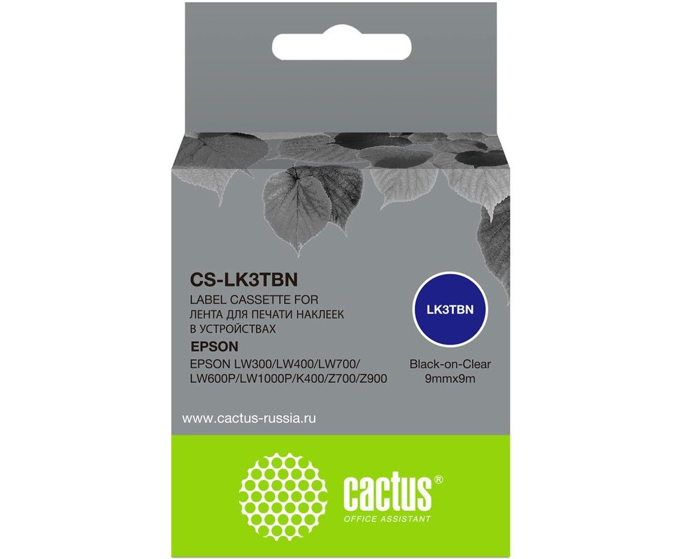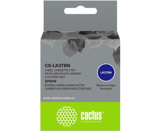 Картридж ленточный Cactus CS-LK3TBN LK-3TBN черный на прозрачном 9x9 для Epson LW300/LW400/LW700/LW600P/LW1000P/K400/Z700/Z900