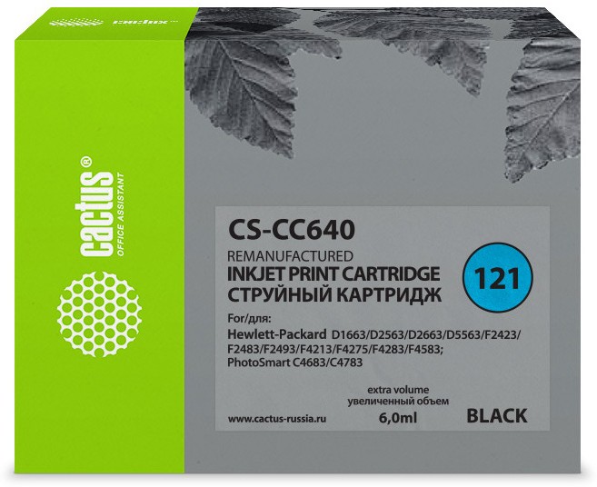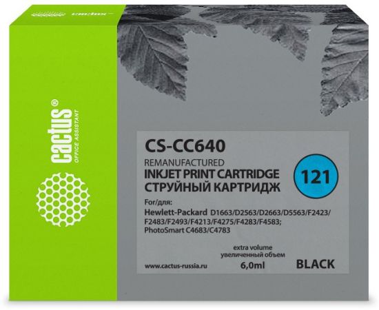 Картридж струйный Cactus CS-CC640 №121 черный 6мл для HP DJ D1663/D2563/D2663/D5563/F2423/F2483/F2493/F4213/F4275/F4283/F4583/PS C4683/C4783