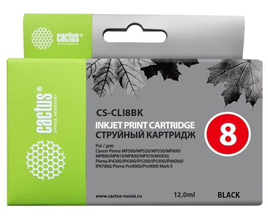 Картридж струйный Cactus CS-CLI8BK черный для Canon MP470 MP500 MP530 MP600 (12ml)