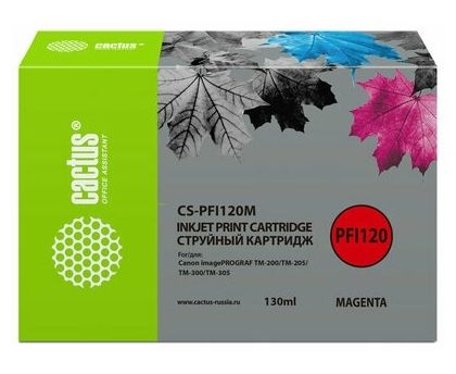 Картридж струйный Cactus CS-PFI120M пурпурный (130мл) для Canon imagePROGRAF TM-200/TM-205/TM-300/TM-305