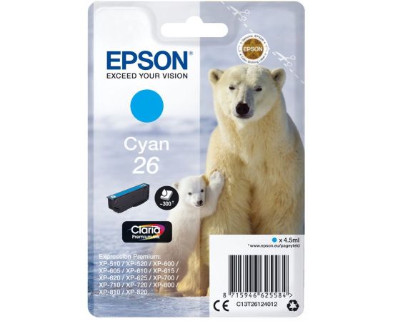 Картридж струйный Epson T2612 C13T26124012 голубой (4.5мл) для Epson XP-600/700/800