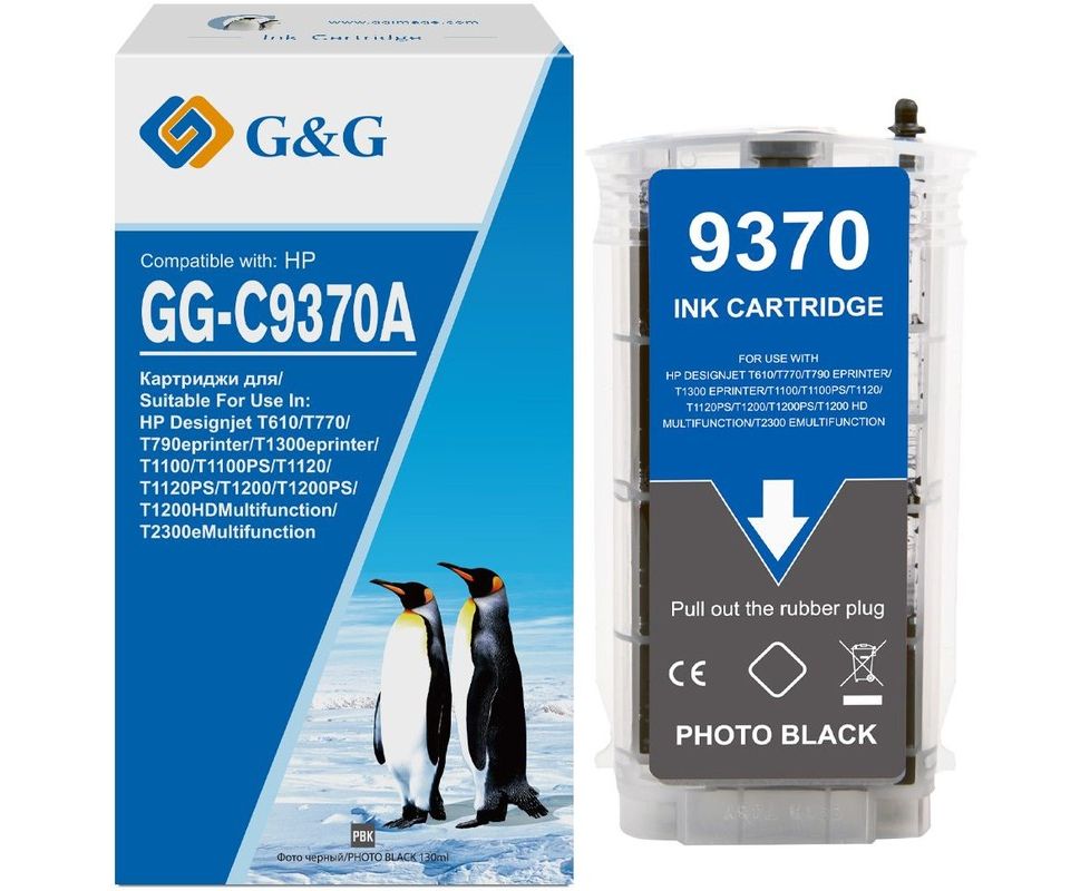Картридж струйный G&G GG-C9370A фото черный (130мл) для HP HP Designjet T610, T770, T790eprinter, T1300eprinter, T1100, T1100PS, T1120, T1120PS, T1200