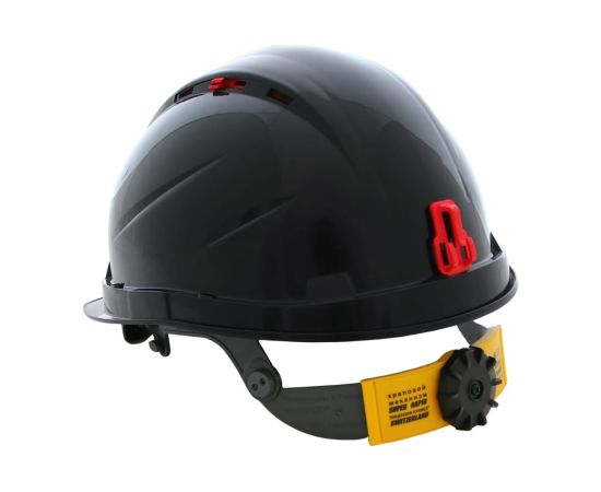 Для совместного ношения с защитными лицевыми щитками (с креплением на каске) и наушниками противошумными (с креплением на каске) предусмотрены пазы в корпусе каски.