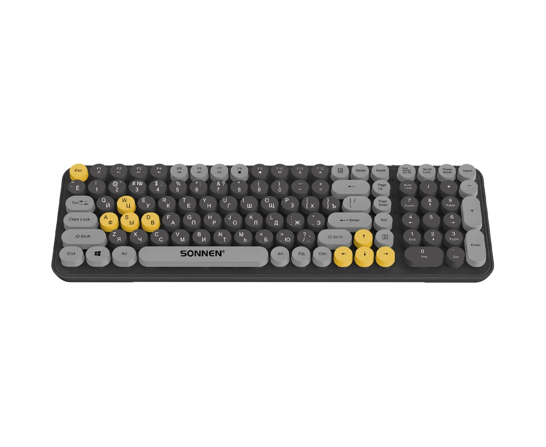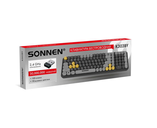 Клавиатура беспроводная SONNEN K303BY (513952) черная/серая/желтая