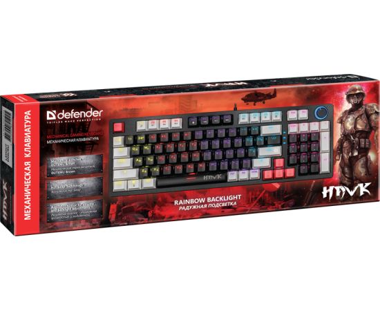 Механическая клавиатура DEFENDER Hawk GK-418 RU,радуж,97кн,1,5м,корич.свитч
