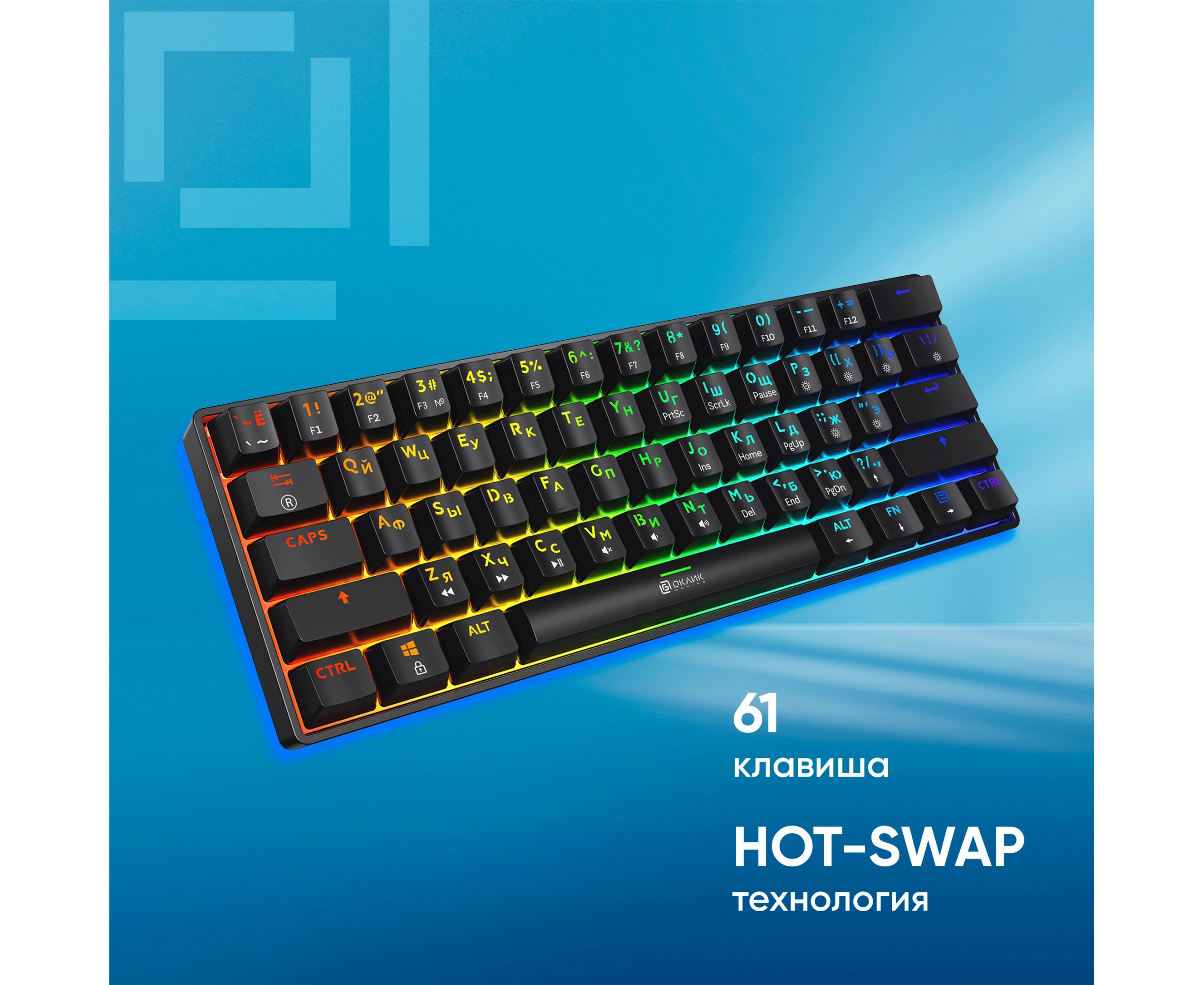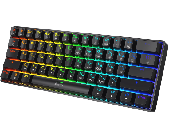 Компактная механическая клавиатура с реализованной технологией Hot-Swap. Яркая RGB-подсветка с возможностью настройки. Свитчи красные линейные (Huano)