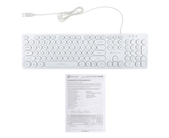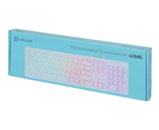 Клавиатура Oklick 420MRL белый USB slim Multimedia LED