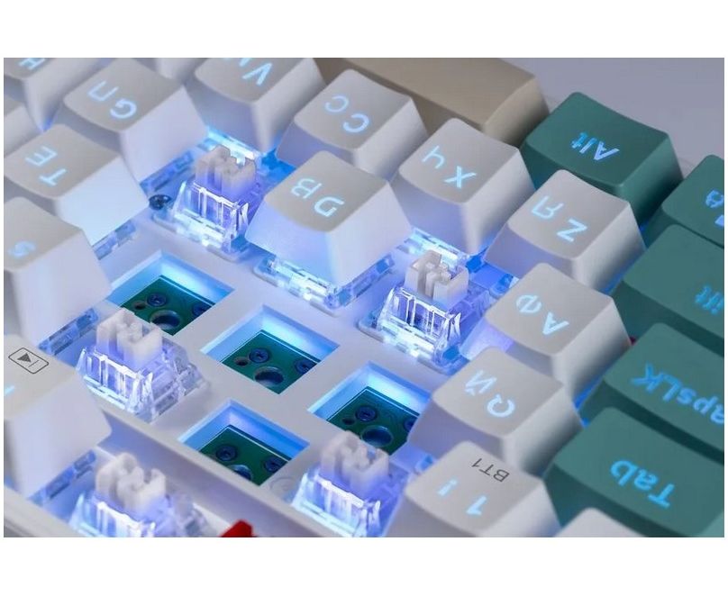 Уникальный дизайн, белые кастомные почти бесшумные свичи Redragon, беспроводные протоколы связи (BT, 2.4G), крутая RGB-подсветка — это Veigar! Подходит как для игр, так и для работы.