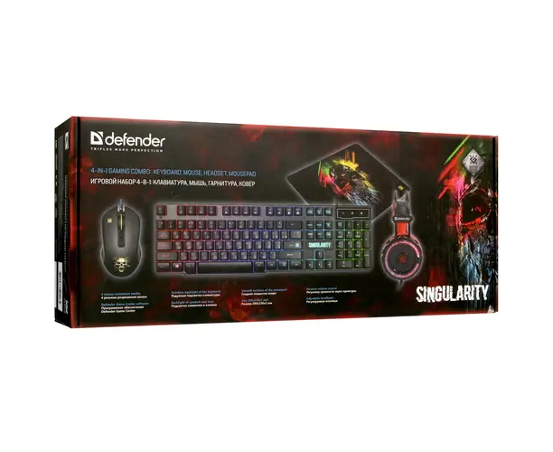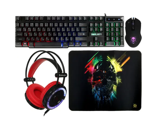 Комплект игровой DEFENDER Singularity MKP-118 мышь+клавиатура+гарнитура+ков.
