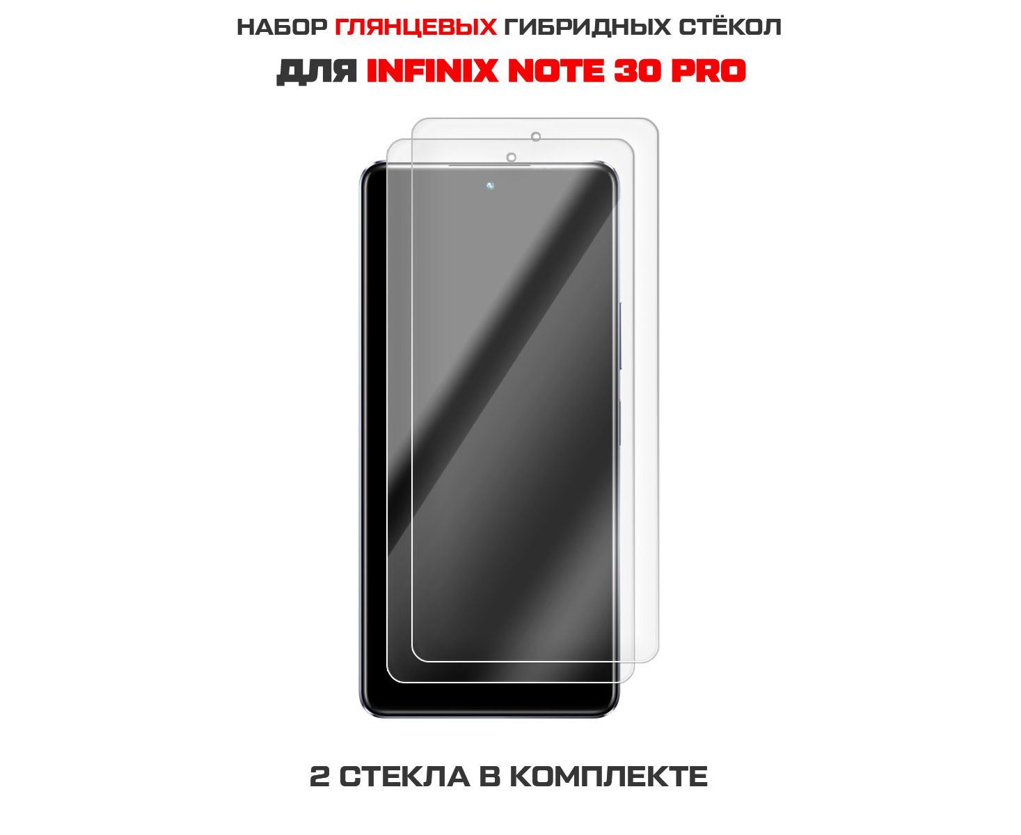 Комплект из 2-х защитных гибридных стекол Krutoff для INFINIX Note 30 Pro