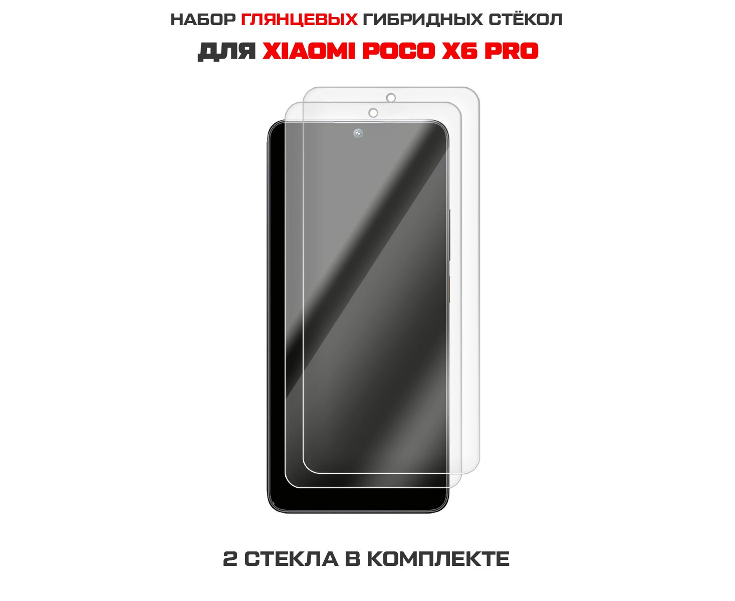 Комплект из 2-х защитных гибридных стекол Krutoff для Xiaomi Poco X6 Pro