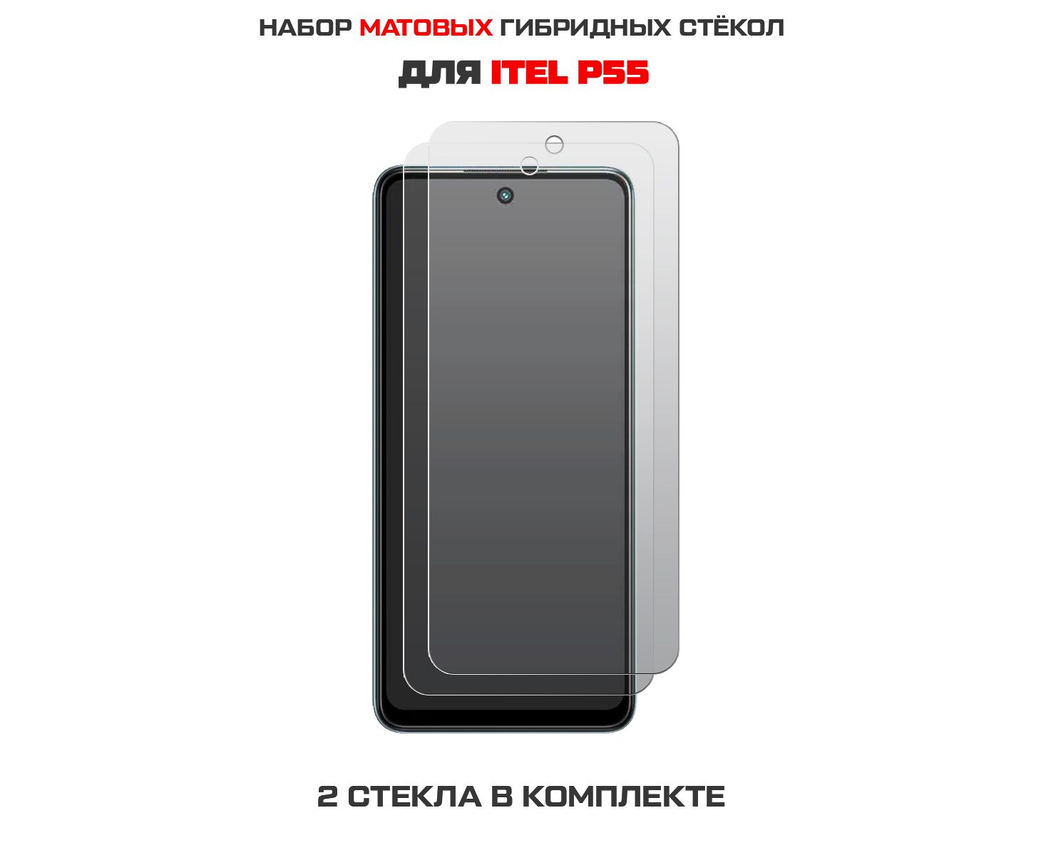 Комплект из 2-х защитных гибридных стекол МАТОВЫХ Krutoff для ITEL P55