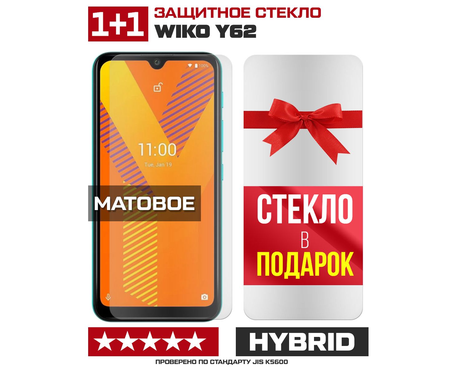 Комплект из 2-x защитных гибридных стекол МАТОВЫХ Krutoff для Wiko Y62