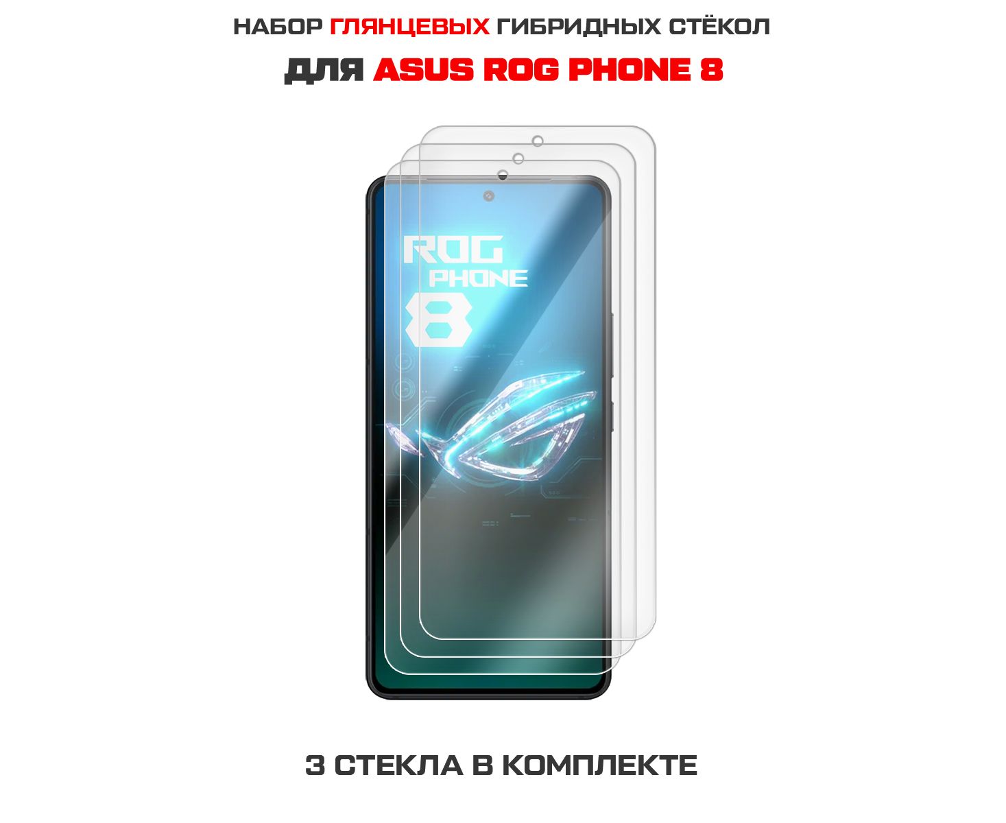 Комплект из 3-х защитных гибридных стекол Krutoff для Asus ROG Phone 8