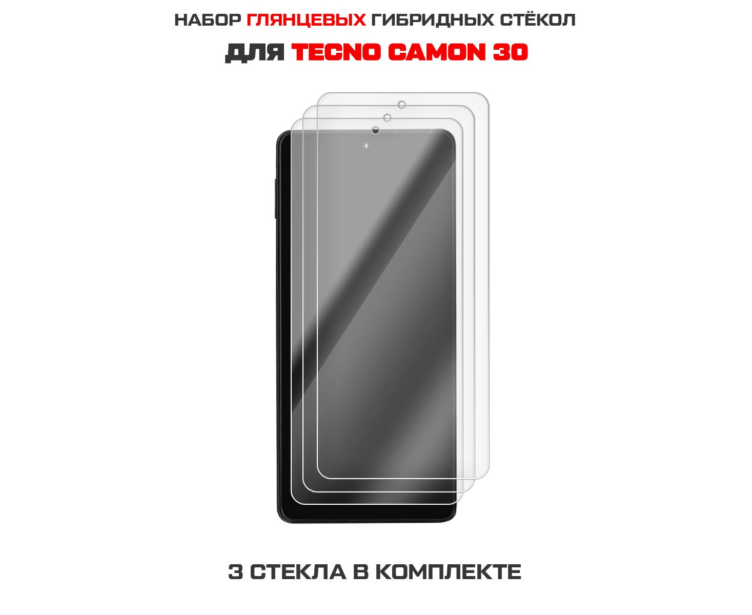 Комплект из 3-х защитных гибридных стекол Krutoff для TECNO Camon 30
