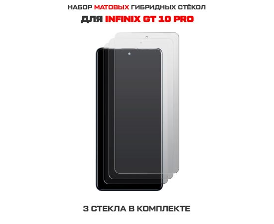 Комплект из 3-х защитных гибридных стекол МАТОВЫХ Krutoff для INFINIX GT 10 Pro