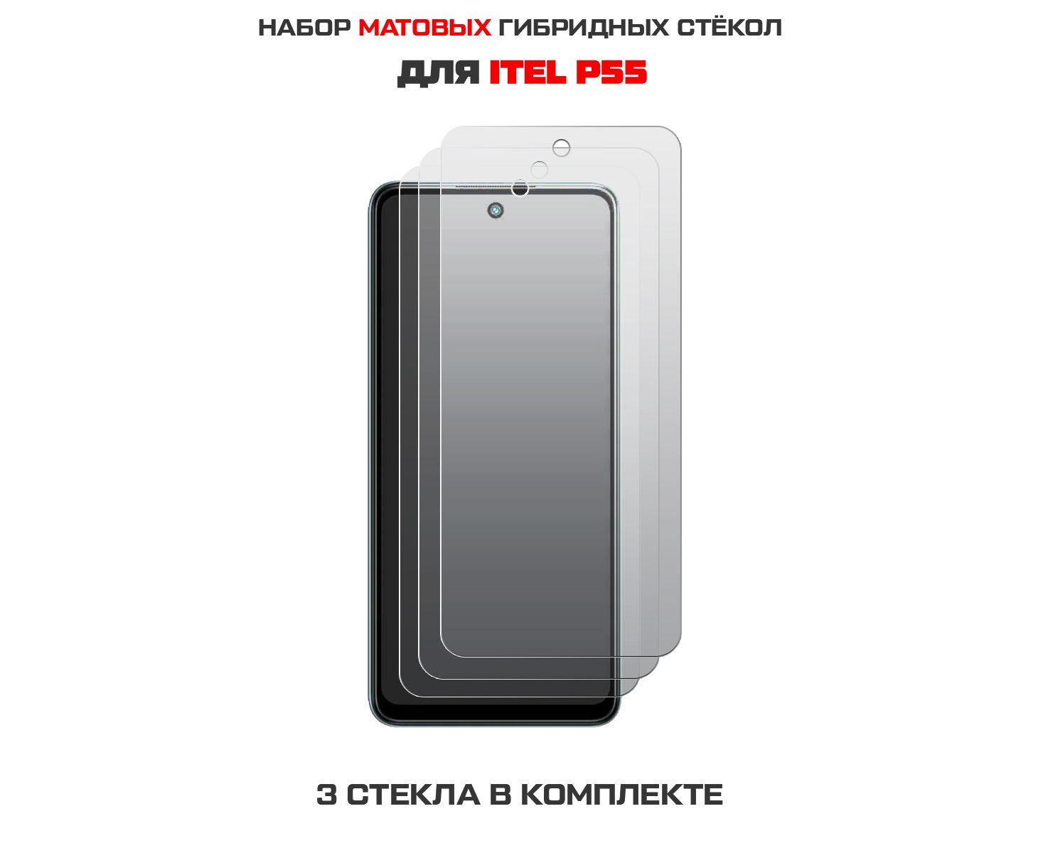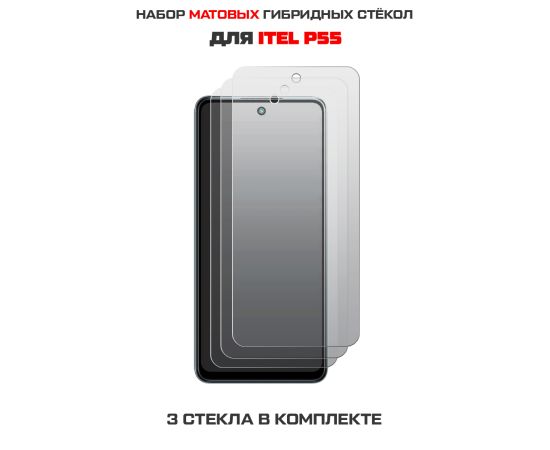 Комплект из 3-х защитных гибридных стекол МАТОВЫХ Krutoff для ITEL P55