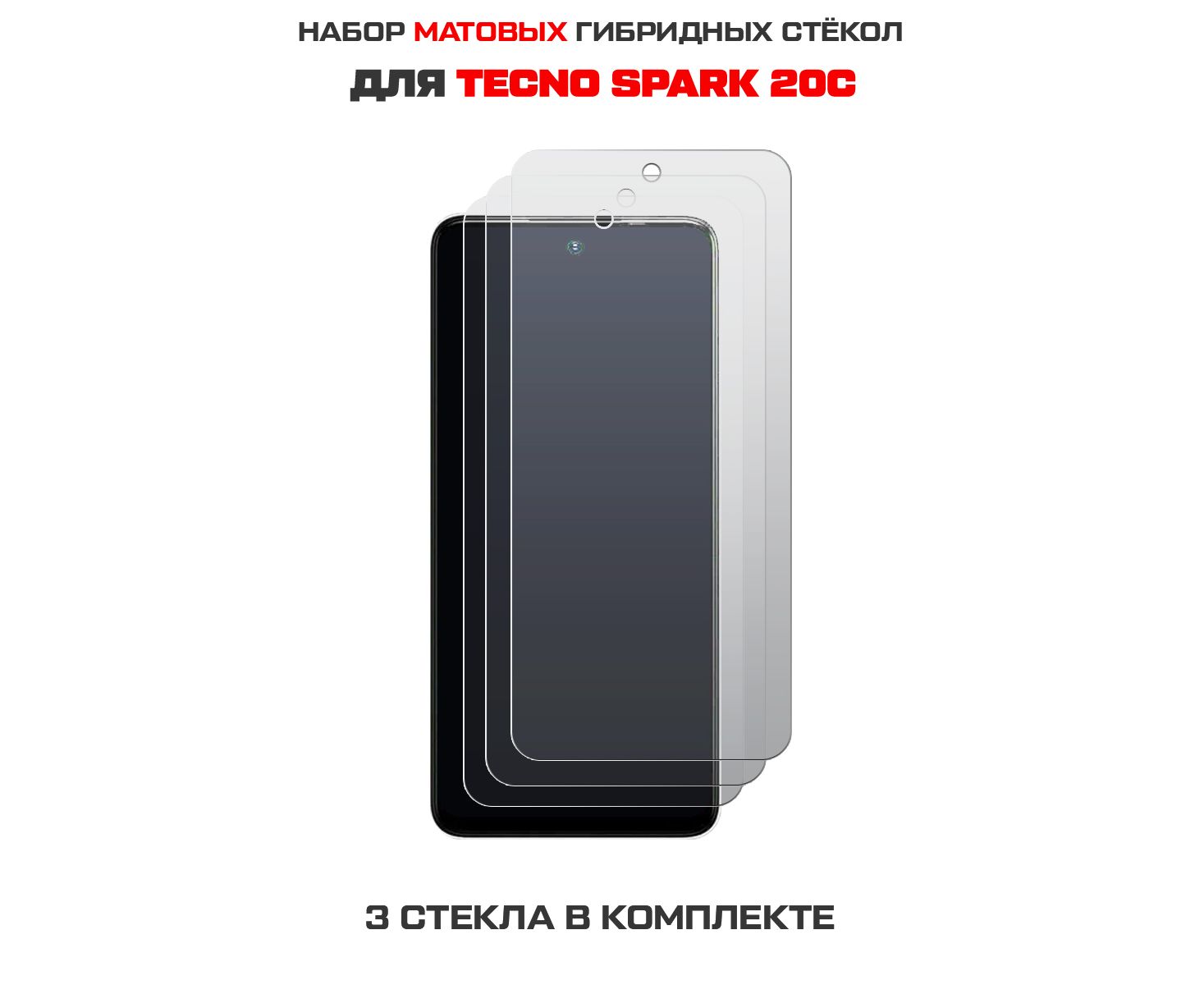 Комплект из 3-х защитных гибридных стекол МАТОВЫХ Krutoff для TECNO Spark 20С