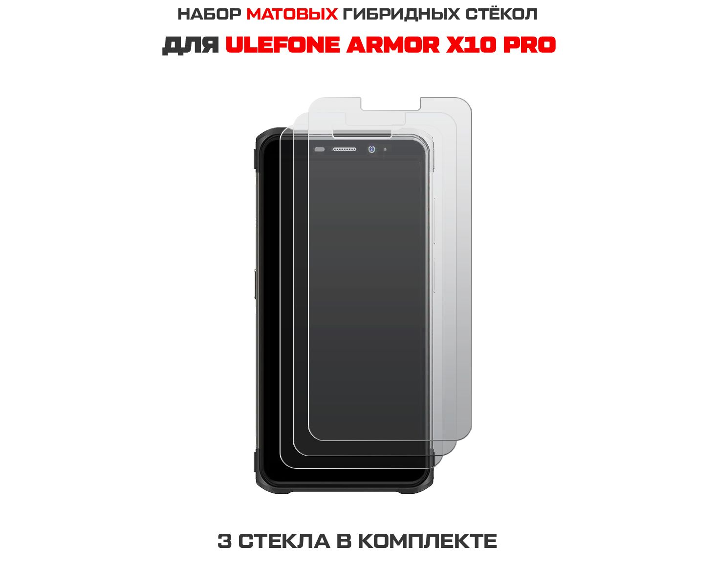 Комплект из 3-х защитных гибридных стекол МАТОВЫХ Krutoff для Ulefone Armor X10 Pro