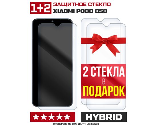 Комплект из 3-x защитных гибридных стекол Krutoff для Xiaomi POCO C50