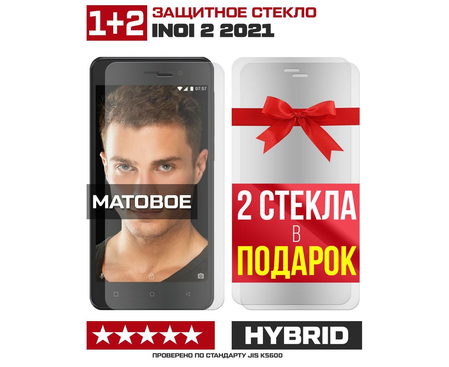 Комплект из 3-x защитных гибридных стекол МАТОВЫХ Krutoff для INOI 2 2021