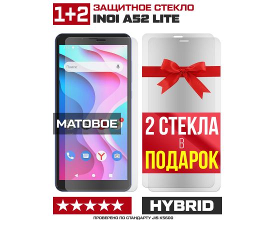 Комплект из 3-x защитных гибридных стекол МАТОВЫХ Krutoff для INOI A52 Lite