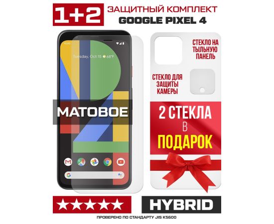 Комплект из защитных гибридных стекол МАТОВЫХ Krutoff для Google Pixel 4 перед / зад / камера (2 шт.)