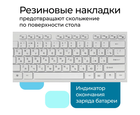 Стильный беспроводной офисный набор в белом цвете. В набор входит полноразмерная клавиатура с плоскими кнопками и мышь с симметричной формой, удобной для работы любой рукой. Комплект работает от одного приемника.