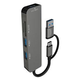 Мульти Хаб PERO MH05, USB-С/USB-A TO SD + TF + USB 3.0 + 2xUSB 2.0, серый