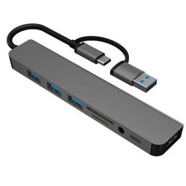 Мульти Хаб PERO MH07, USB-С/USB-A TO SD + TF + AUX 3.5 MM + USB-C + USB 3.0 + 3xUSB 2...