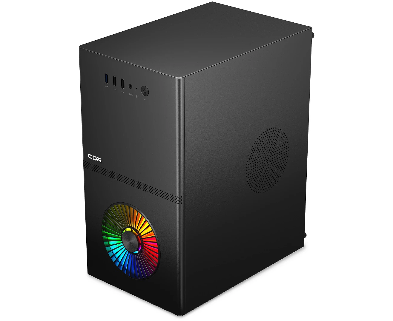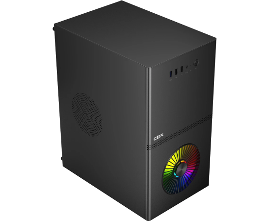 Корпус CBR V867 (PCC-MATX-V867-WPSU), без БП, mATX Minitower, 1*USB 3.0, 2*USB 2.0, HD Audio+Mic, Rainbow Fan, Black