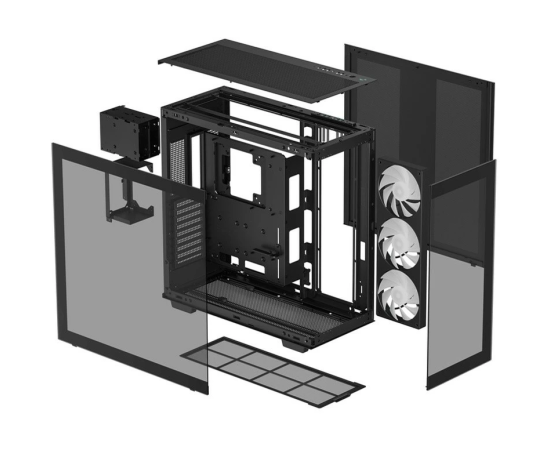 Корпус Deepcool CH780 без БП, боковое окно (закаленное стекло), 3xARGB LED 140мм, черный, E-ATX