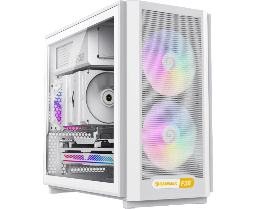 Корпус GameMax F36 WH без БП (Midi Tower, ATX, Белый, 1*USB Type-C, 3*120мм)