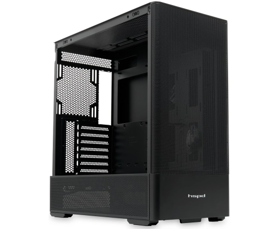 Корпус HSPD M712 (M712-TGBK) без БП, Mesh Mid Tower, Black, TG, 0.6 SPCC, no fans, E-ATX, ATX, mITX, 175/410/160mm, 2x2.5", 7xPCI