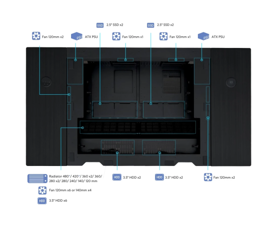 E-ATX, ATX, mATX, Mini-ITX